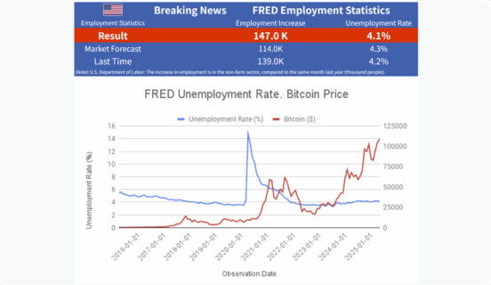 Breaking News: 🇺🇸 FRED Employment Statistics Job growth139.0 K people. Unemployment rate4.2%