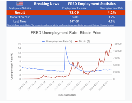 🚨 BREAKING NEWS 🚨FRED 🇺🇸 U.S. Employment Statistics Released.👷♂️ Non-Farm Payrolls: 73.0 K. 📉 Unemployment Rate: 4.2%. 🗓️ Date: August 1, 2025
